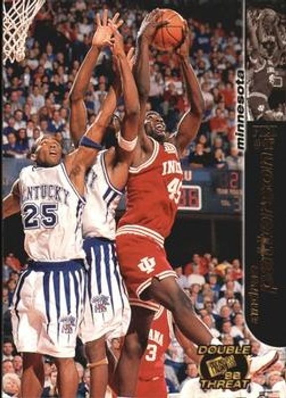 Other popular players in the 1998 Press Pass Double Threat set include Michael Olowokandi, Raef LaFrentz, Mike Bibby, Paul Pierce, and Vince Carter.