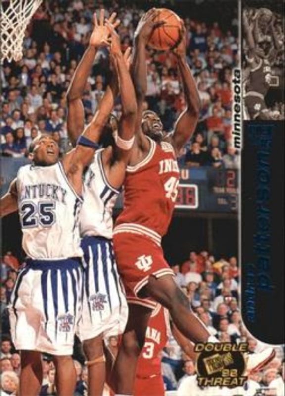 Other popular players in the 1998 Press Pass Double Threat set include Michael Olowokandi, Raef LaFrentz, Mike Bibby, Paul Pierce, and Vince Carter.