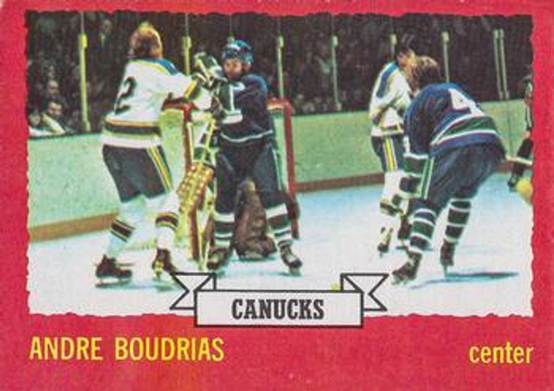 The Andre Boudrias 1973 O-Pee-Chee #19 Base card is 1 of 2 Andre Boudrias' card variations in the 1973 O-Pee-Chee set being tracked by Sports Card Investor, including Light Back.