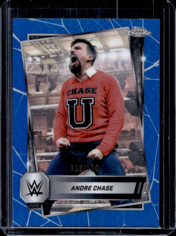 The Andre Chase 2025 Topps Chrome WWE #32 Blue Refractor /150 card is 1 of 50 Andre Chase's card variations in the 2025 Topps Chrome WWE set being tracked by Sports Card Investor, including Base, Black & Gold Refractor, Geometric Refractor, Neon Green & Black Refractor, and Pink Shimmer Refractor.