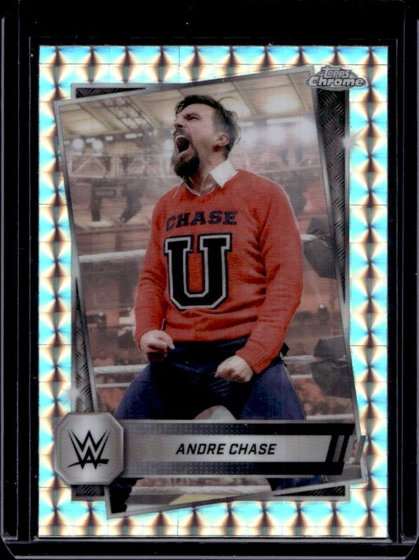 The Andre Chase 2025 Topps Chrome WWE #32 Geometric Refractor card is 1 of 50 Andre Chase's card variations in the 2025 Topps Chrome WWE set being tracked by Sports Card Investor, including Base, Black & Gold Refractor, Neon Green & Black Refractor, Pink Shimmer Refractor, and Prism Refractor.