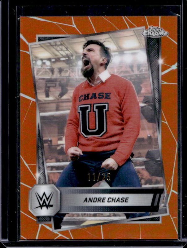 The Andre Chase 2025 Topps Chrome WWE #32 Orange Refractor /25 card is 1 of 50 Andre Chase's card variations in the 2025 Topps Chrome WWE set being tracked by Sports Card Investor, including Base, Black & Gold Refractor, Geometric Refractor, Neon Green & Black Refractor, and Pink Shimmer Refractor.