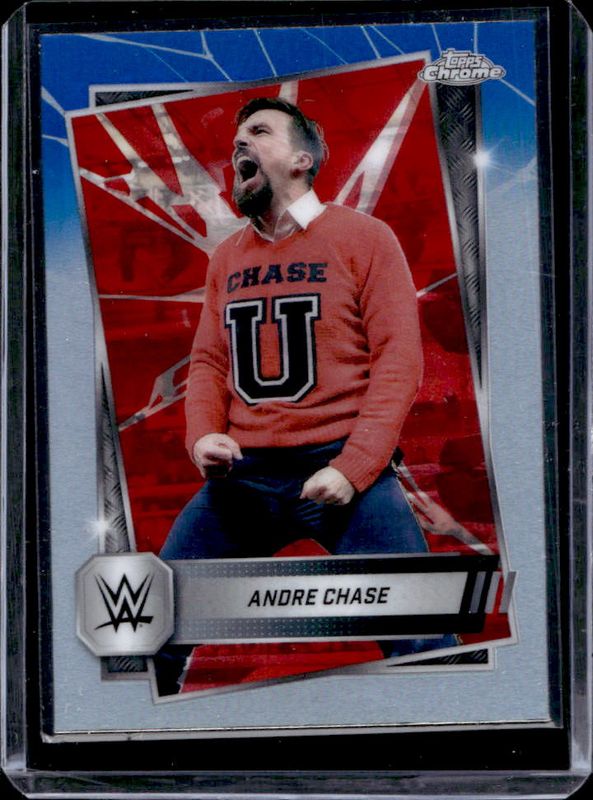 The Andre Chase 2025 Topps Chrome WWE #32 Red & Blue Refractor card is 1 of 50 Andre Chase's card variations in the 2025 Topps Chrome WWE set being tracked by Sports Card Investor, including Base, Black & Gold Refractor, Geometric Refractor, Neon Green & Black Refractor, and Pink Shimmer Refractor.