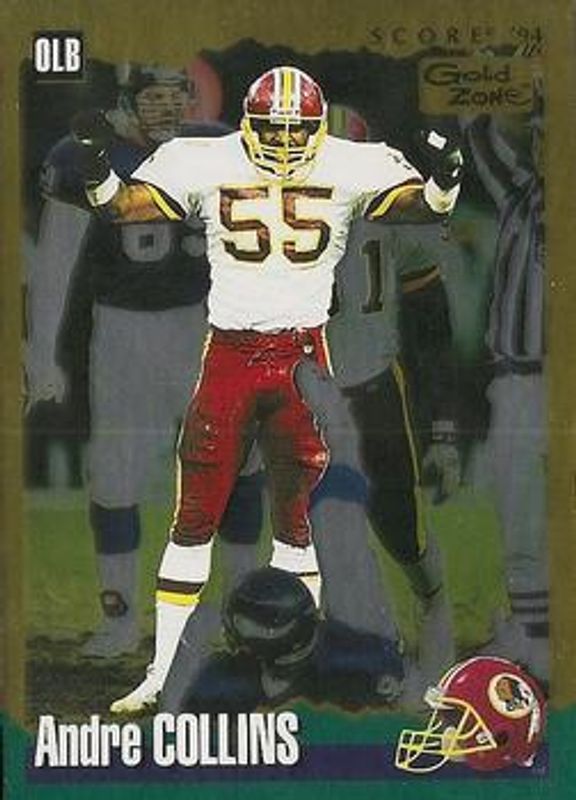 The Andre Collins 1994 Score #52 Gold Zone card is 1 of 2 Andre Collins' card variations in the 1994 Score set being tracked by Sports Card Investor, including Base.