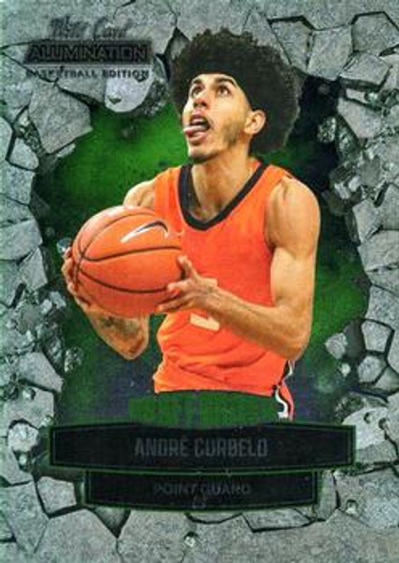 The Andre Curbelo 2021 Wild Card Alumination #DD-4 Draft Driven Green card is 1 of 207 Andre Curbelo's card variations in the 2021 Wild Card Alumination set being tracked by Sports Card Investor, including Base, 100 Stripe, 10 Stripe, 20 Stripe, and 50 Stripe.