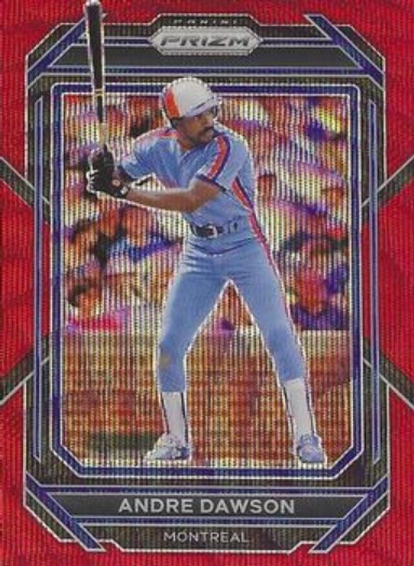 The Andre Dawson 2023 Prizm #193 Ruby Wave card is 1 of 33 Andre Dawson's card variations in the 2023 Prizm set being tracked by Sports Card Investor, including Base, Blue Ice, Giraffe, Green Ice, and Hyper.