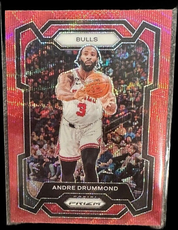 The Andre Drummond 2023 Prizm #256 Ruby Wave card is 1 of 65 Andre Drummond's card variations in the 2023 Prizm set being tracked by Sports Card Investor, including Base, Blue Wave, Choice Blue Yellow Green, Fast Break, and Green.