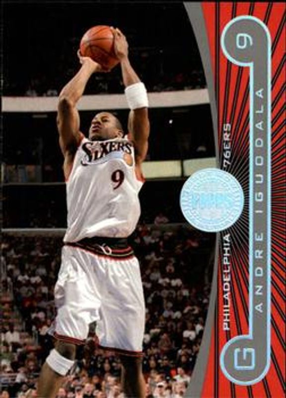 The Andre Iguodala 2005 Topps First Row #68 Base /549 card is 1 of 9 Andre Iguodala's card variations in the 2005 Topps First Row set being tracked by Sports Card Investor, including Gold Rainbow /325, Black & White /225, Gold /100, Sepia /25, and Thunder Relics /200.