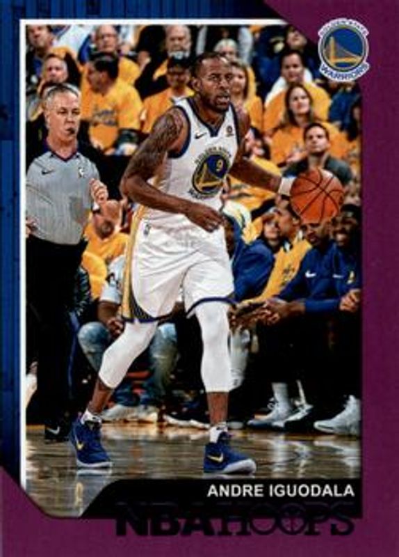 The Andre Iguodala 2018 Hoops #45 Purple card is 1 of 21 Andre Iguodala's card variations in the 2018 Hoops set being tracked by Sports Card Investor, including Base, Red Backs, Premium Box Set /199, Blue, and Get Out the Way.