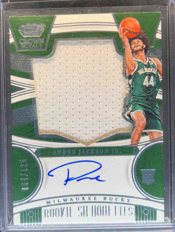 The Andre Jackson Jr. 2023 Crown Royale #123 Base Rookie card is 1 of 52 Andre Jackson Jr.'s card variations in the 2023 Crown Royale set being tracked by Sports Card Investor, including Base, Crystal, International Red, Royalty, and Blue Crystal /99.
