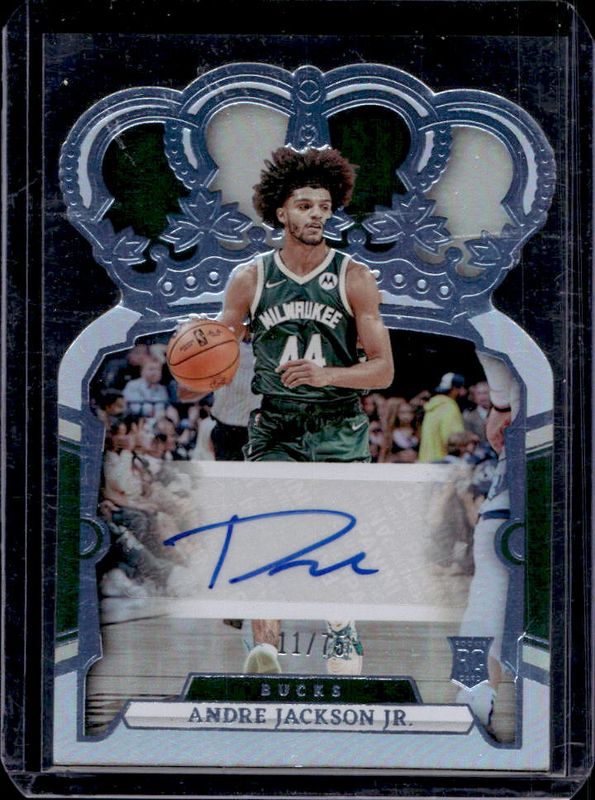 The Andre Jackson Jr. 2023 Crown Royale #RC-AJJ Rookie Crown Autographs - Blue /75 card is 1 of 52 Andre Jackson Jr.'s card variations in the 2023 Crown Royale set being tracked by Sports Card Investor, including #123 Base, #88 Base, #88 Crystal, #88 International Red, and #88 Royalty.