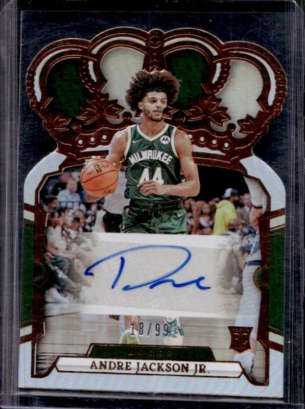 The Andre Jackson Jr. 2023 Crown Royale #RC-AJJ Rookie Crown Autographs /99 card is 1 of 52 Andre Jackson Jr.'s card variations in the 2023 Crown Royale set being tracked by Sports Card Investor, including #123 Base, #88 Base, #88 Crystal, #88 International Red, and #88 Royalty.