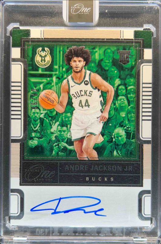 The Andre Jackson Jr. 2023 Impeccable #RA-AJJ Rookie Autographs /99 card is 1 of 41 Andre Jackson Jr.'s card variations in the 2023 Impeccable set being tracked by Sports Card Investor, including #13 Base /99, #123 Base /99, #13 International, #123 International, and #13 Silver /75.