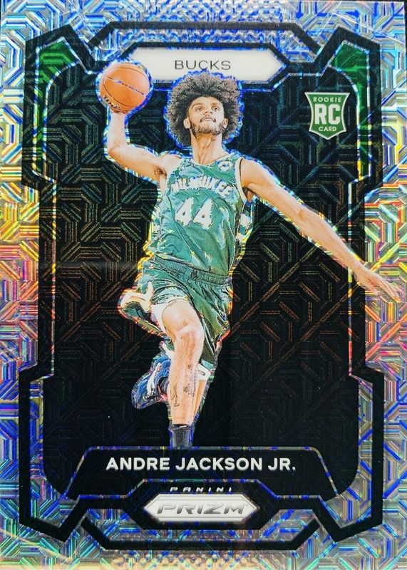 This card is 1 of 64 Andre Jackson Jr.'s card variations in the 2023 Prizm set being tracked by Sports Card Investor, including Base, Blue Wave, Choice Blue Yellow Green, Fast Break, and Green.