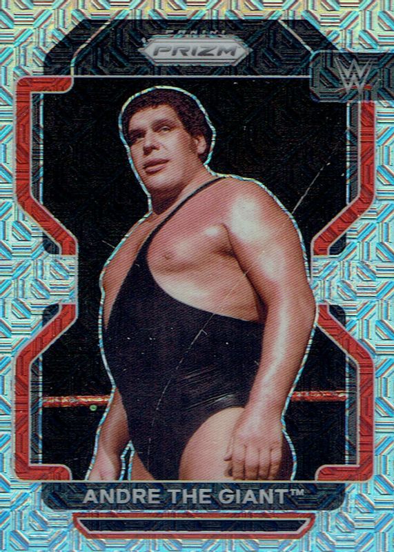This card is 1 of 20 Andre The Giant's card variations in the 2022 Prizm WWE set being tracked by Sports Card Investor, including Green, Hyper, Ice, Red White Blue, and Ruby Wave.