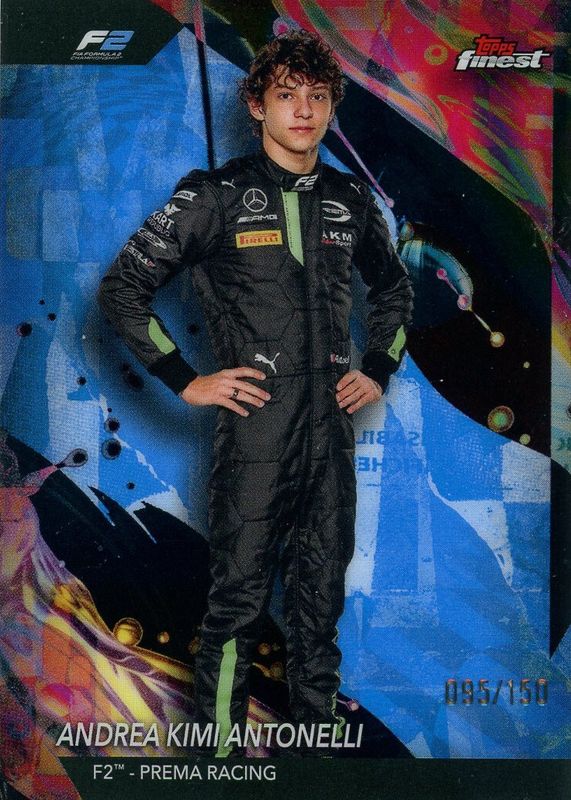 2024 Topps Finest F1 F2 Blue Refractor Uncommon Andrea Kimi Antonelli /150 HD