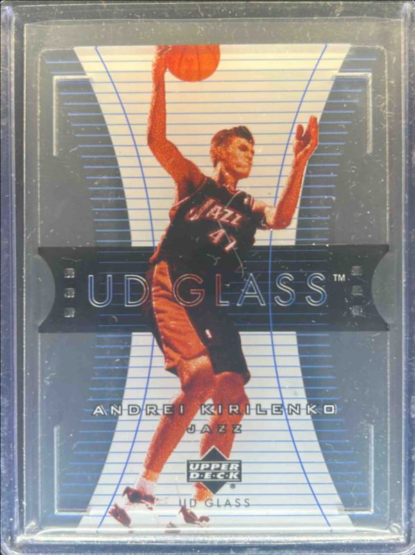 The Andrei Kirilenko 2003 Upper Deck Glass #57 2003 Upper Deck Glass /1100 card is 1 of 4 Andrei Kirilenko's card variations in the 2003 Upper Deck Glass set being tracked by Sports Card Investor, including Plexi Glass, Gold /100, and Crystal /25.