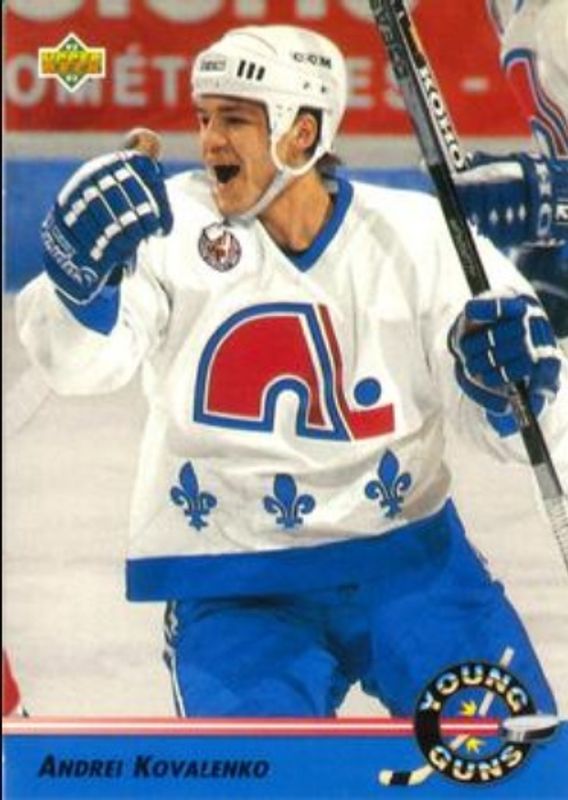 The Andrei Kovalenko 1992 Upper Deck #567 Base Rookie card is 1 of 4 Andrei Kovalenko's card variations in the 1992 Upper Deck set being tracked by Sports Card Investor, including Calder Candidates, Euro Rookies, and Gordie Howe Selects.