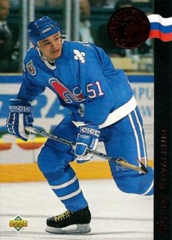The Andrei Kovalenko 1992 Upper Deck #ER14 Euro Rookies card is 1 of 4 Andrei Kovalenko's card variations in the 1992 Upper Deck set being tracked by Sports Card Investor, including Base, Calder Candidates, and Gordie Howe Selects.