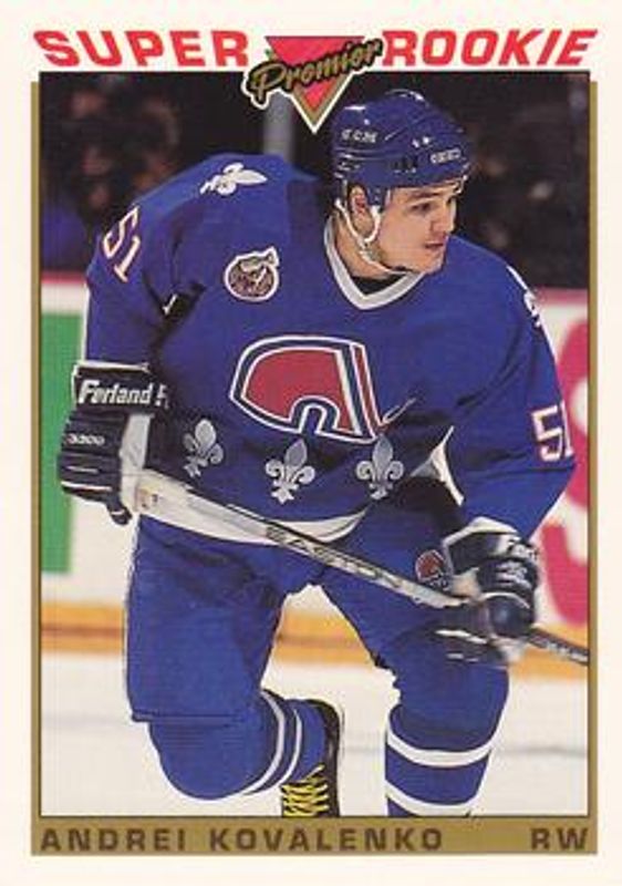 The Andrei Kovalenko 1993 Topps Premier #124 Base card is 1 of 5 Andrei Kovalenko's card variations in the 1993 Topps Premier set being tracked by Sports Card Investor, including #198 Base, #124 Gold, #198 Gold, and #17 Black Gold.