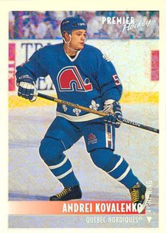 The Andrei Kovalenko 1994 Topps Premier #97 Special Effects card is 1 of 2 Andrei Kovalenko's card variations in the 1994 Topps Premier set being tracked by Sports Card Investor, including Base.