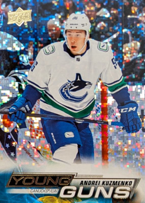 This card is 1 of 10 Andrei Kuzmenko's card variations in the 2022 Upper Deck set being tracked by Sports Card Investor, including Young Guns Base, Young Guns Canvas, Young Guns Canvas - Black & White, Young Guns - Clear Cut, and Young Guns - French.