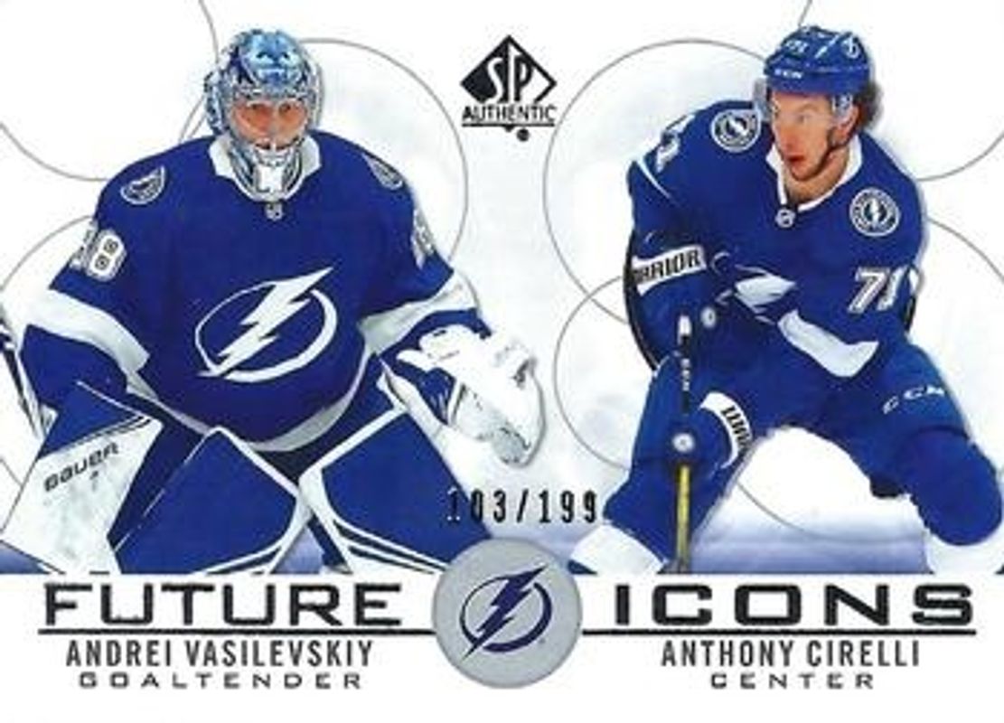 The Andrei Vasilevskiy 2020 SP Authentic #142 Base /999 card is 1 of 16 Andrei Vasilevskiy's card variations in the 2020 SP Authentic set being tracked by Sports Card Investor, including Base /999, Black Gold Ink, Limited Autographs, Limited Red, and 2000 Retro.