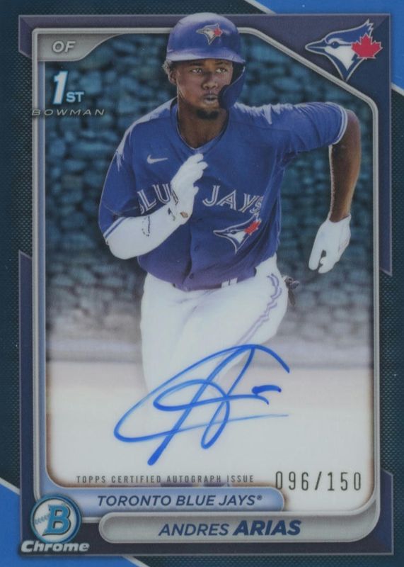 Andres Arias 2024 Bowman Chrome Blue Refractor 1st Auto/150 Blue Jays