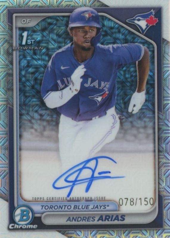 Andres Arias 2024 Bowman Chrome #CPA-AAR Prospect Auto - HTA Choice Refractor /150 (1st) RAW Price Guide