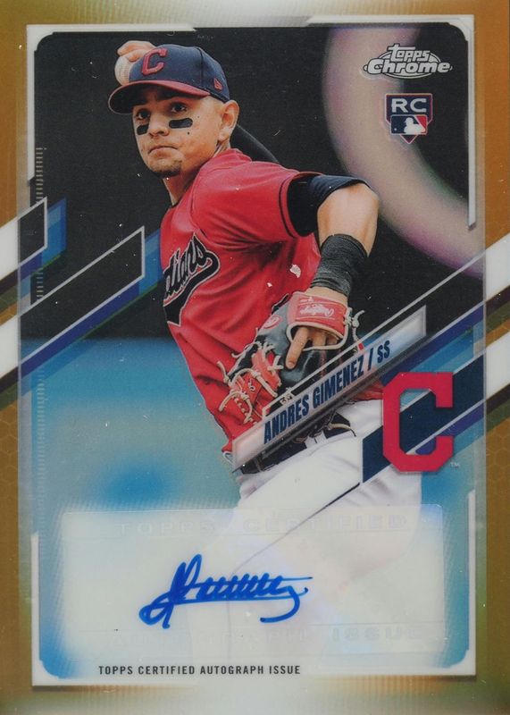 Auctions Ending Soon for Andres Gimenez 2021 Topps Chrome Update #CUSA-AG Autographs - Gold Refractor /50 Rookie RAW