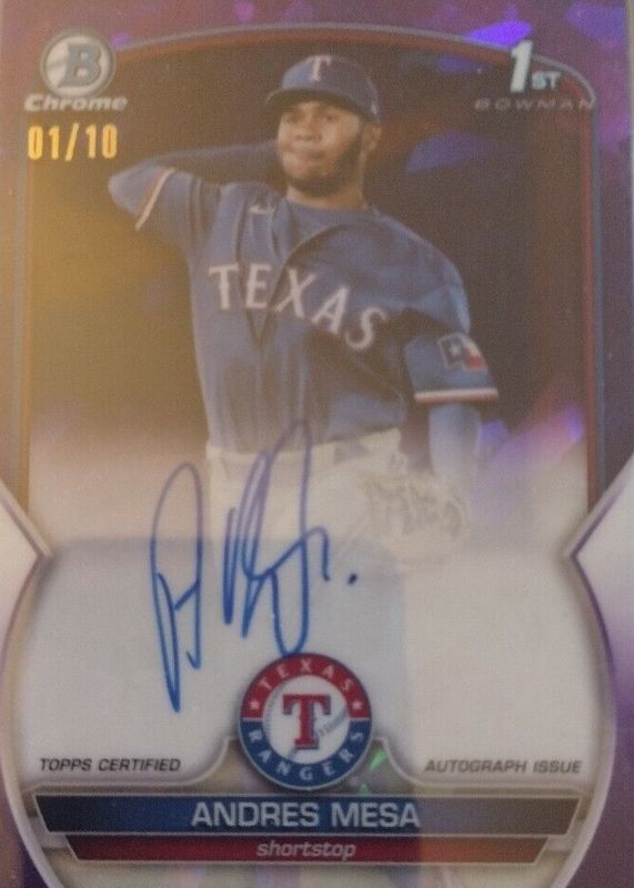 Andres Mesa 2023 Bowman Sapphire Edition #BSPA-AM Chrome Prospect Auto - Purple /10 (1st) RAW Price Guide
