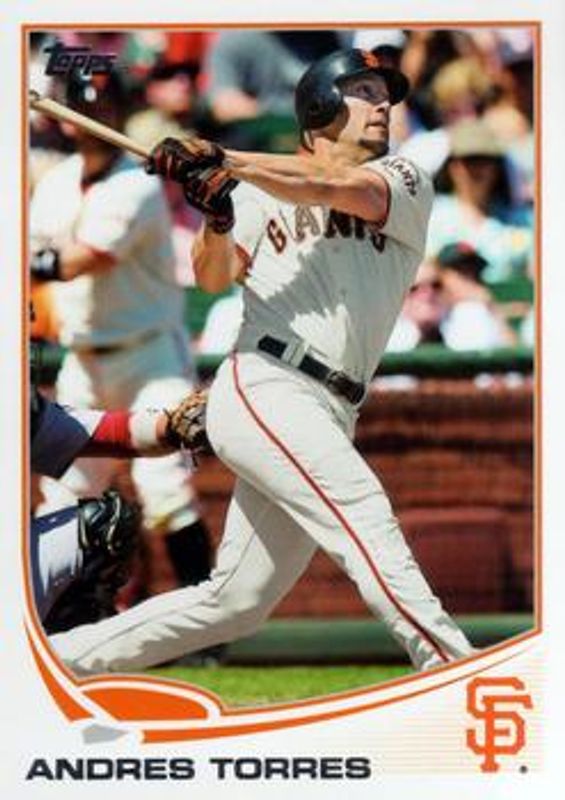 The Andres Torres 2013 Topps #393 Base card is 1 of 18 Andres Torres' card variations in the 2013 Topps set being tracked by Sports Card Investor, including Blue, Emerald Foil, Purple, Red, and Silver Slate Blue Sparkle.