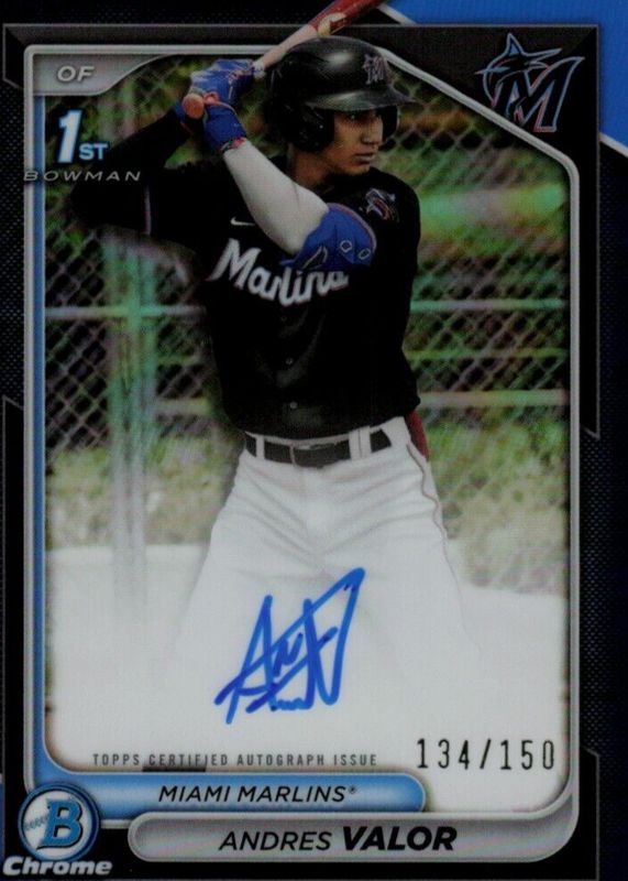 2024 Bowman Chrome Andres Valor Auto Blue Refractor #/150 Marlins 1st