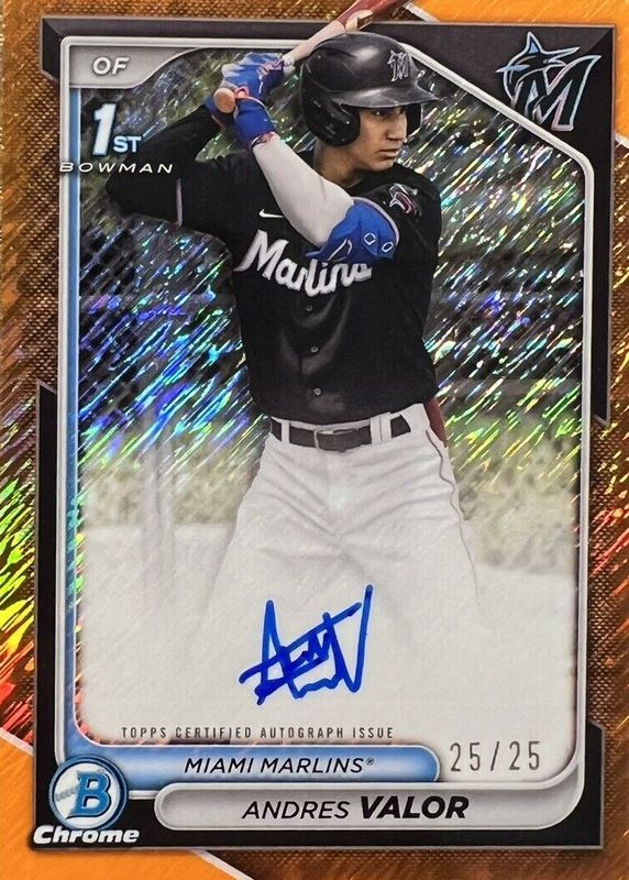 2024 Bowman Chrome ANDRES VALOR Orange Shimmer Refractor AUTO/25 RC Marlins 1st