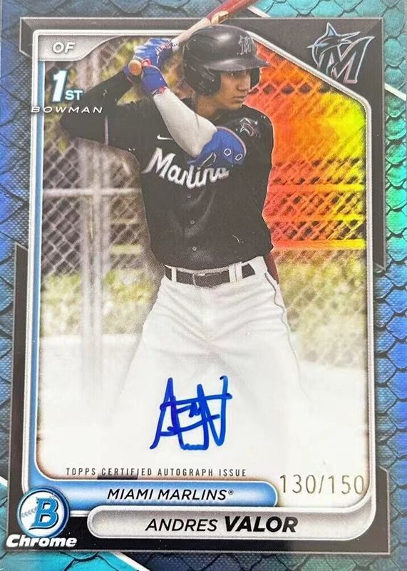 Andres Valor 2024 Bowman Chrome #CPA-AV Prospect Auto - Reptilian Blue Refractor /150 (1st) RAW Price Guide