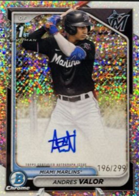 2024 Bowman Chrome 1st Speckle Refractor Andres Valor Auto /299 Miami Marlins
