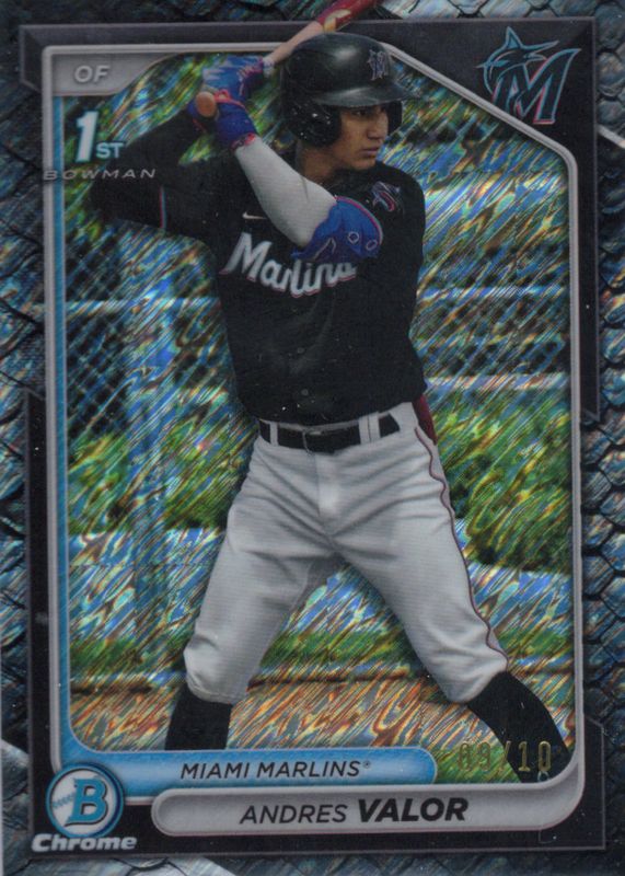 This card is 1 of 51 Andres Valor's card variations in the 2024 Bowman Chrome set being tracked by Sports Card Investor, including Prospects (1st), Prospects - Shimmer Refractor (1st), Prospects - Refractor /499 (1st), Prospects - Speckle Refractor /299 (1st), and Prospects - Purple Refractor /250 (1st).