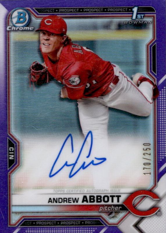 2021 Bowman Chrome Draft Andrew Abbott 1st Purple Refractor Auto /250 Reds