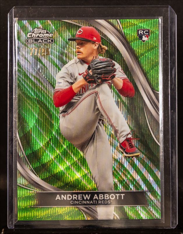 The Andrew Abbott 2024 Topps Chrome Black #11 Green Wave Refractor /99 Rookie card is 1 of 23 Andrew Abbott's card variations in the 2024 Topps Chrome Black set being tracked by Sports Card Investor, including #11 Base, #11b Base, #11 Refractor /199, #11 Purple Mini-Diamond Refractor /150, and #11 Green Refractor /99.