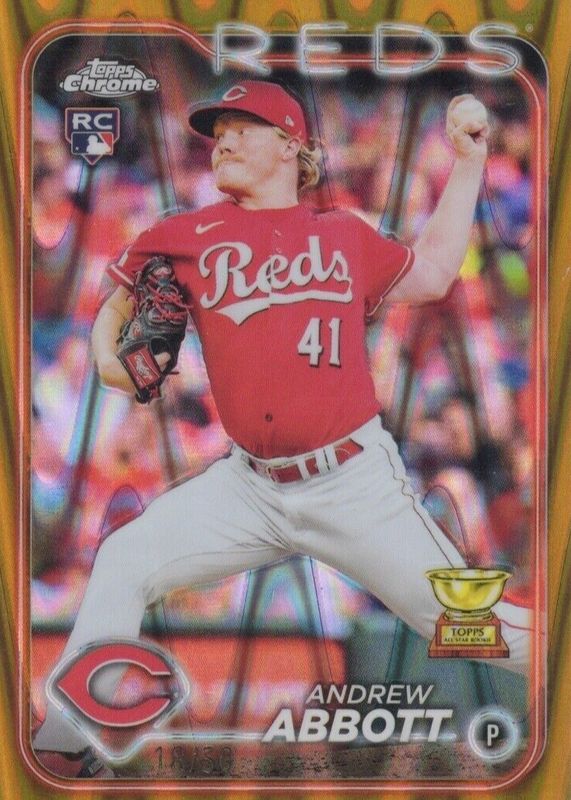 2024 Topps Chrome Andrew Abbott #154 Gold RayWave Refractor /50 Reds