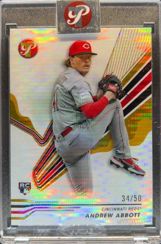 The Andrew Abbott 2024 Topps Pristine #15 Pristine Gold Refractor /50 Rookie card is 1 of 18 Andrew Abbott's card variations in the 2024 Topps Pristine set being tracked by Sports Card Investor, including Base, Pristine Refractor, Refractor, Green Refractor /150, and Pristine Purple Refractor /99.