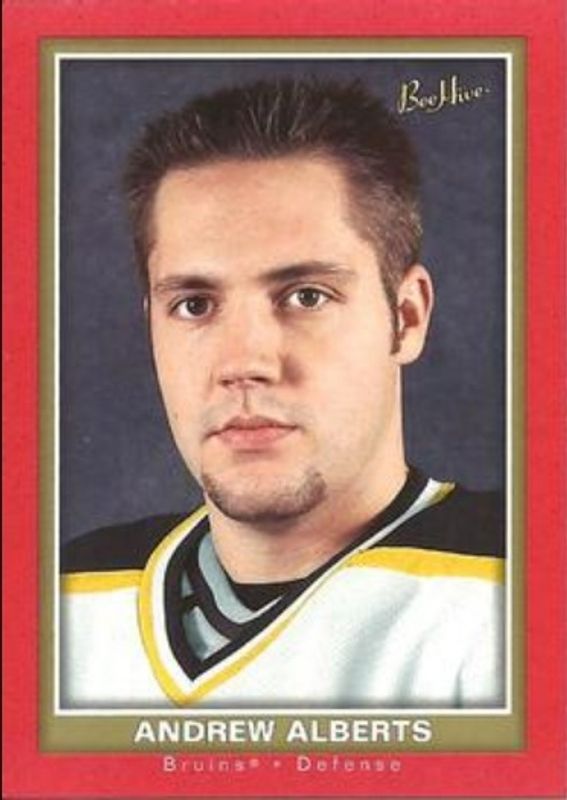 The Andrew Alberts 2005 Upper Deck Beehive #143 Red Rookie card is 1 of 7 Andrew Alberts' card variations in the 2005 Upper Deck Beehive set being tracked by Sports Card Investor, including Base, Beige, Blue, Gold, and Matte /25.
