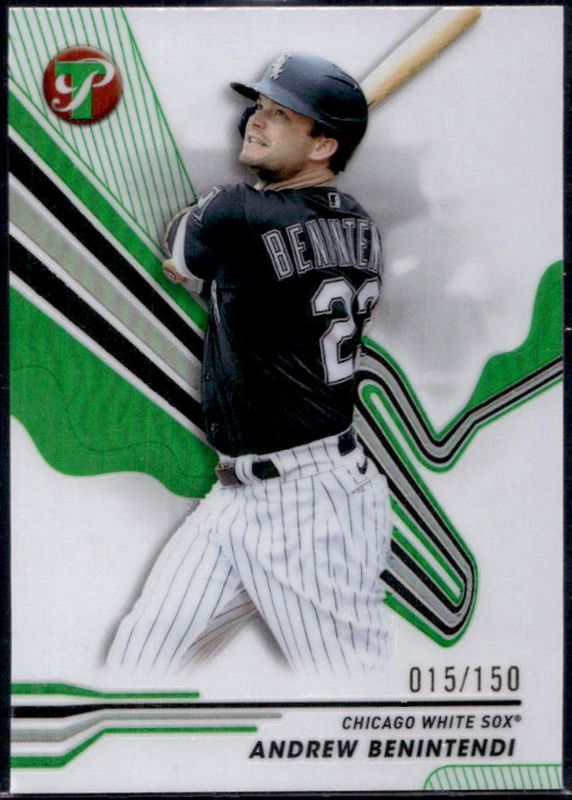 The Andrew Benintendi 2024 Topps Pristine #29 Green Refractor /150 card is 1 of 18 Andrew Benintendi's card variations in the 2024 Topps Pristine set being tracked by Sports Card Investor, including Base, Pristine Refractor, Refractor, Pristine Purple Refractor /99, and Purple Refractor /99.