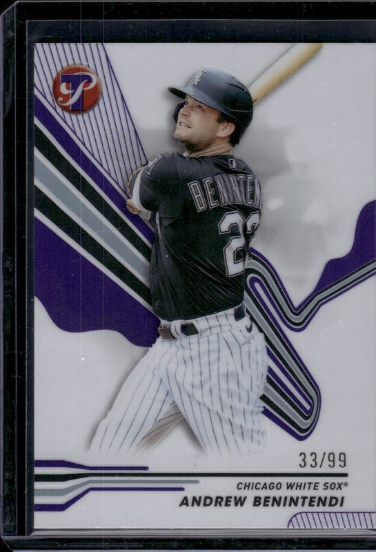 The Andrew Benintendi 2024 Topps Pristine #29 Purple Refractor /99 card is 1 of 18 Andrew Benintendi's card variations in the 2024 Topps Pristine set being tracked by Sports Card Investor, including Base, Pristine Refractor, Refractor, Green Refractor /150, and Pristine Purple Refractor /99.