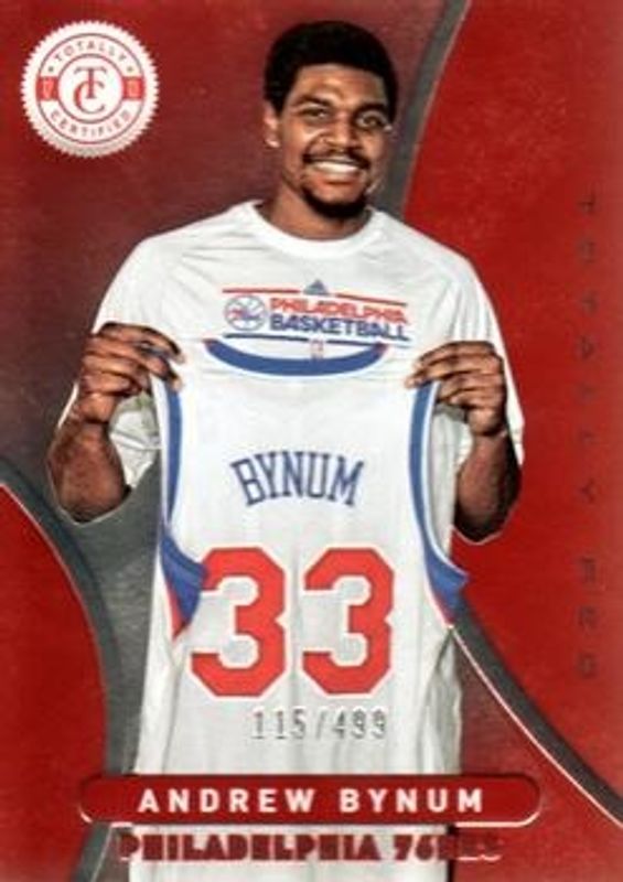 The Andrew Bynum 2012 Totally Certified #36 Totally Red /499 card is 1 of 25 Andrew Bynum's card variations in the 2012 Totally Certified set being tracked by Sports Card Investor, including Base, Totally Blue /299, Totally Gold /25, Totally Green /5, and Printing Plate Black /1.