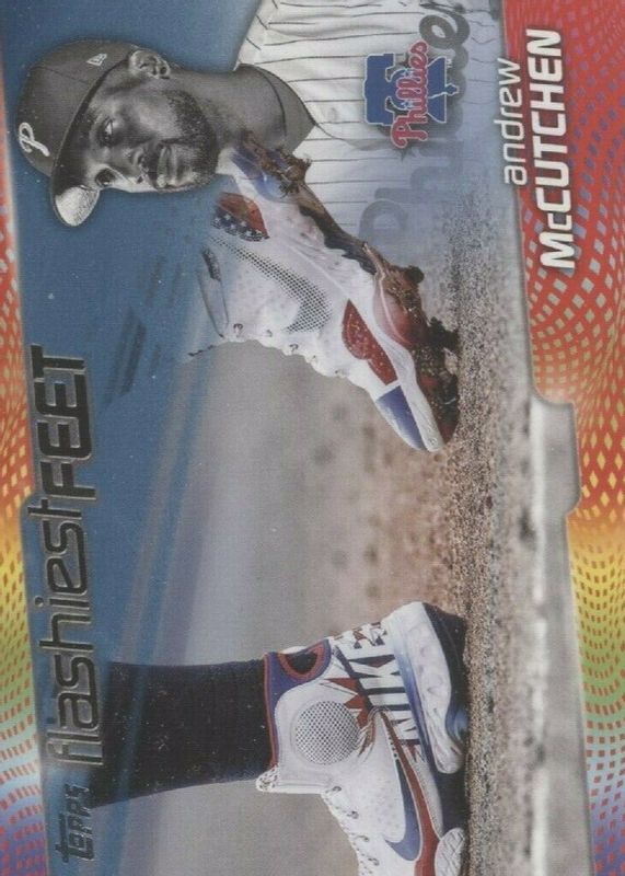 The Andrew McCutchen 2022 Topps #FF-6 Flashiest Feet - Blue card in Raw condition has not changed in price in the last 30 days and was last sold for $2.00 .