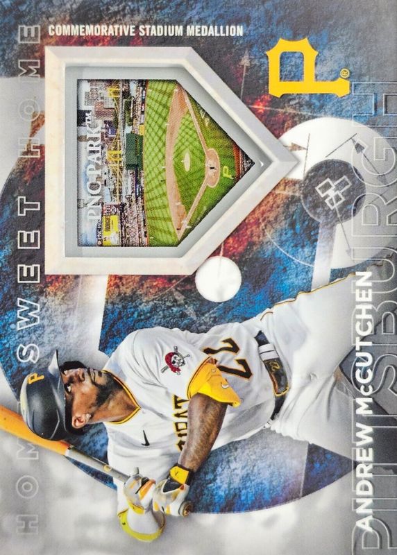 The Andrew McCutchen 2024 Topps #HSH-AM Home Sweet Home Stadium Medallion /299 card in Raw condition has not changed in price in the last 30 days and was last sold for $12.50 .