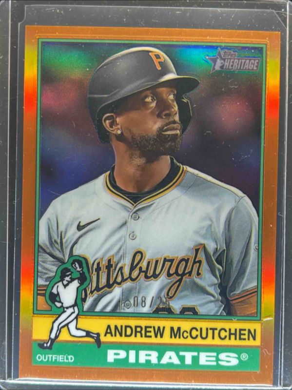 The Andrew McCutchen 2025 Topps Heritage #314 Chrome - Orange Refractor /25 card is 1 of 24 Andrew McCutchen's card variations in the 2025 Topps Heritage set being tracked by Sports Card Investor, including Base, Black Border, Dark Blue Border, Dark Green Border, and Dark Yellow Border.