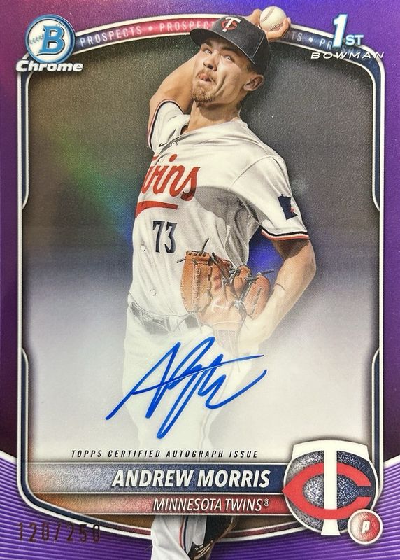 2025 Bowman Chrome ANDREW MORRIS 1st Chrome Purple Refractor Twins /250 AUTO