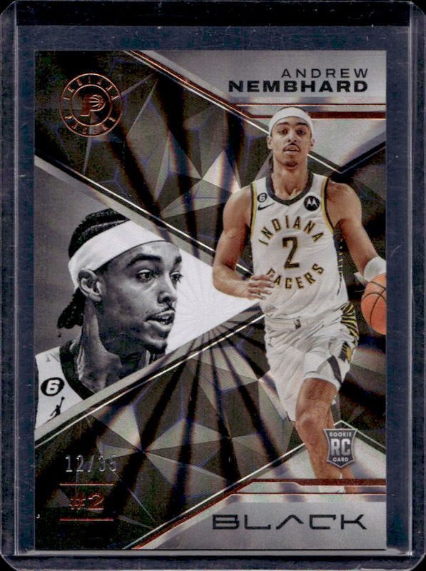 The Andrew Nembhard 2022 Black #93 Copper /35 Rookie card is 1 of 27 Andrew Nembhard's card variations in the 2022 Black set being tracked by Sports Card Investor, including Base, Silver /75, Gold /25, Amethyst /15, and Quartz /8.